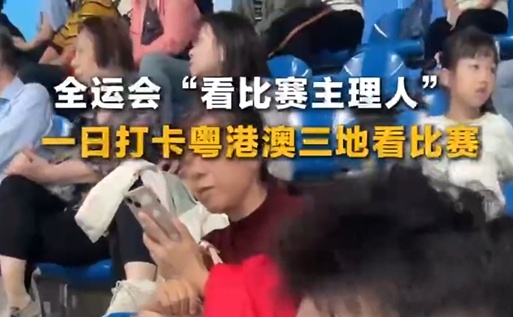 第十五届全运会将在粤港澳大湾区举办。这也是粤港澳首次联合主办的大型综合性运动会。 11月11日,一名来自广州的大学生观众签到观看粤港澳一日比赛。他早上在广州看跳水,下午在香港看篮球,晚上在澳门看乒乓球。他担当“主持人”,实力十足。一日三地签到看比赛的背后,是基础设施的“硬连接”和通关规则的“软连接”,是粤港澳大湾区“心连心”的具体体现。 (记者 常新宇 实习生 范欣然)